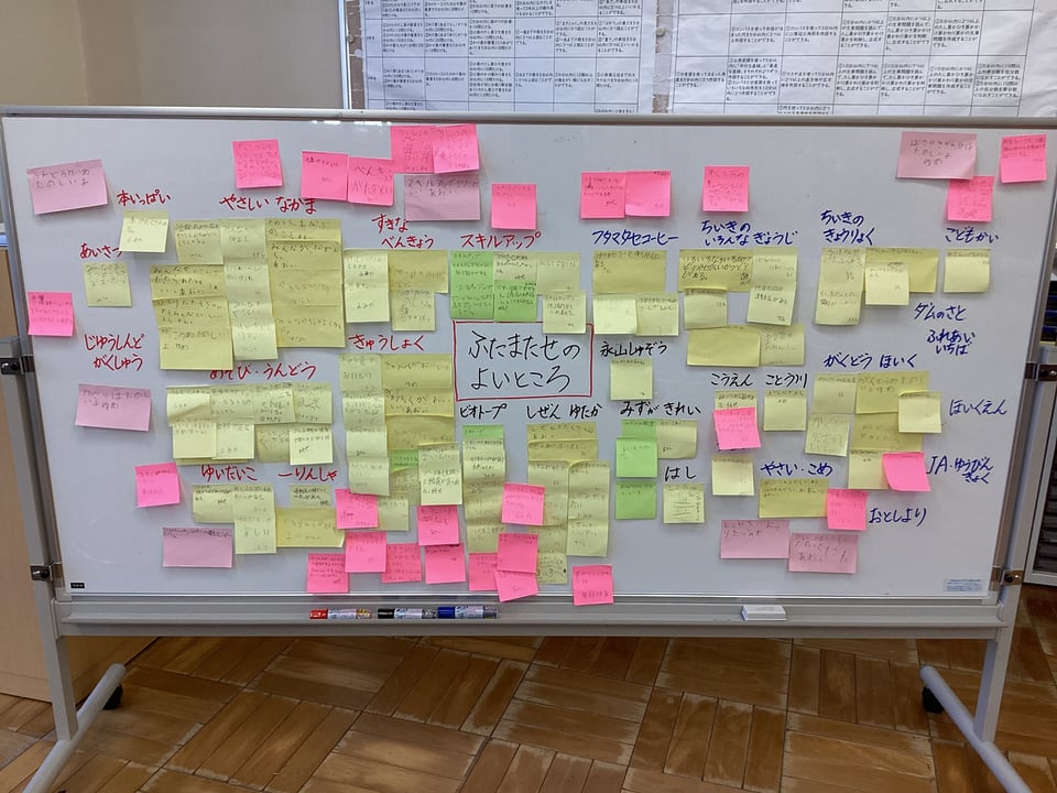 10月7日、特認校熟議に向けた「CS子ども部会」の2回目を行いました。この日は、前回考えた「二俣瀬のよさ」について深めていきました。みんなが考える「二俣瀬のよさ」を生かして、「これから、どんなことをやっていくと、仲間が来てくれるだろうか?」ということについて、一人ひとりが自分の考えをピンクの付箋紙に書き出していきました。学校の主人公は、子どもたちです。その子どもたちの考えを大事して、子どもの願いを叶えていく学校・家庭・地域でありたいと思います。一緒に学ぶ仲間を、一番欲しているのは、子どもたち自身ですから・・・。