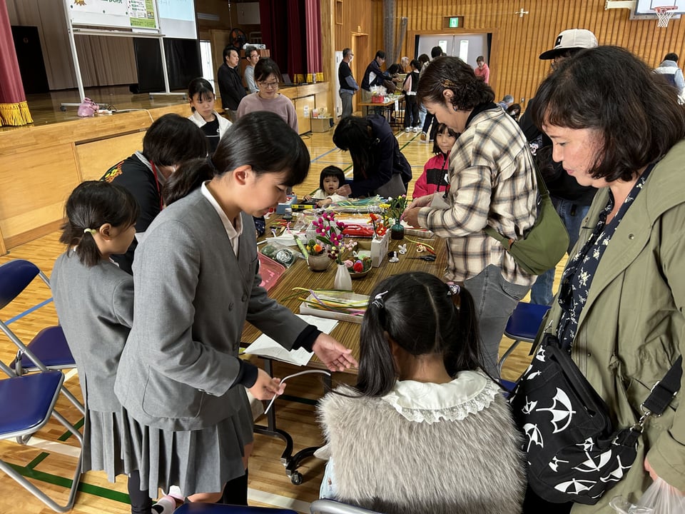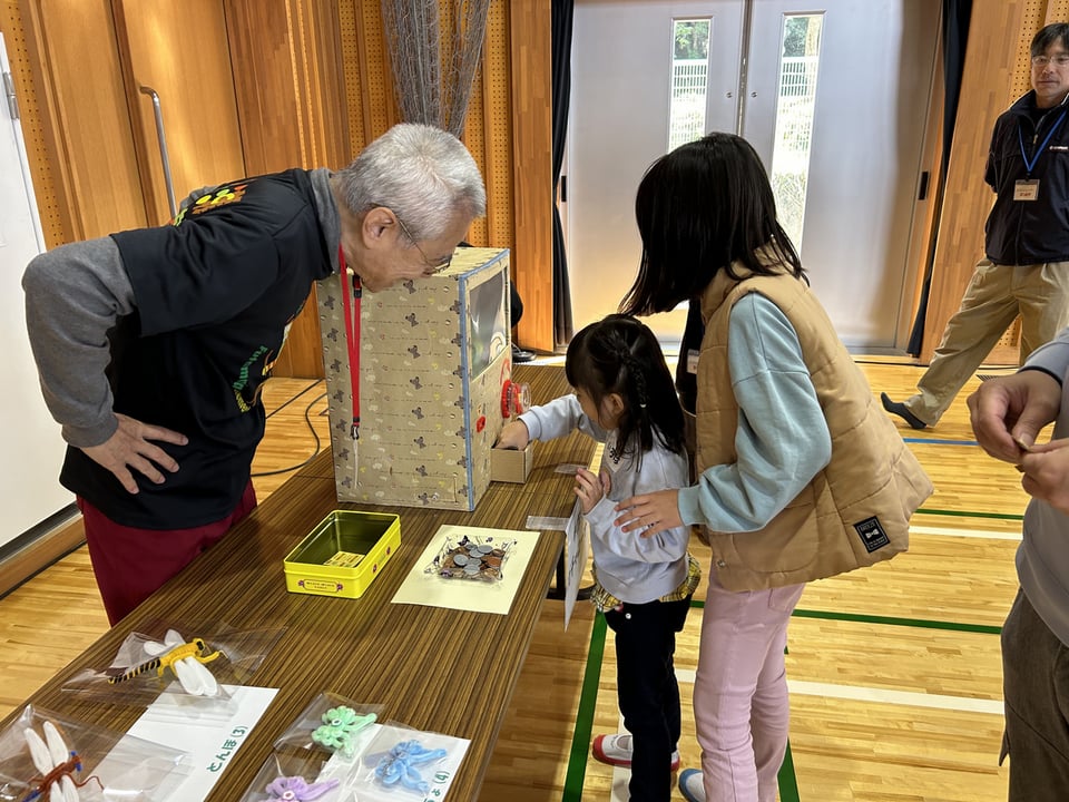 その後は、またまた二俣瀬っ子が大活躍です。クイズの答え合わせを説明してくれたり、参加者の子どもたちが見つけた宝の引き換え賞品の発表をしてくれたりしました。堂々とした態度に感心しました。それから、参加者のみなさんには、チケットにある「お米のすくい取り」「栗・柿のつかみ取り」「手作りガチャ」「モールでお花作り」「手作りおもちゃの遊びコーナー」、それぞれのブースを楽しんでいただきました。どのブースでも、みなさんの笑顔が輝いていました。