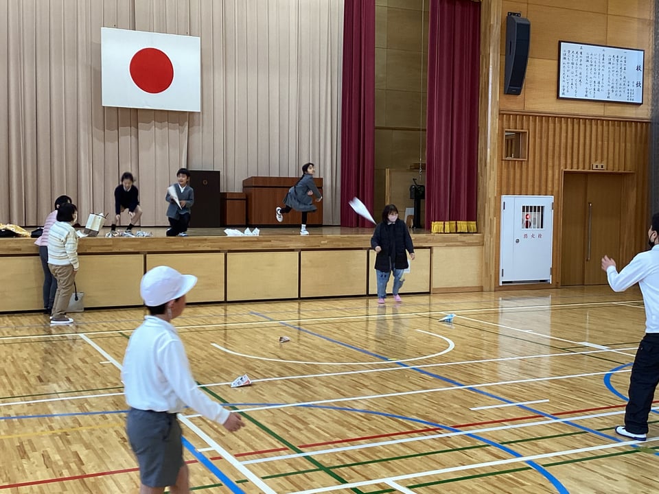 2月28日、二俣瀬地区の民生児童委員のみなさんが来校されて、子どもたちとふれあってくださいました。この活動は、「コミスクルーム」で決定したことです。この日は、子どもたちの給食の様子を見ながら声掛けをしてくださいました。給食終了後の昼休みには、紙飛行機作りが始まりました。いろいろな形の紙飛行機を紹介してもらい、体育館で紙飛行機飛ばしを行いました。子どもたちは、長い距離を飛んだり、長い時間飛び続けたりする紙飛行機に大喜びでした。