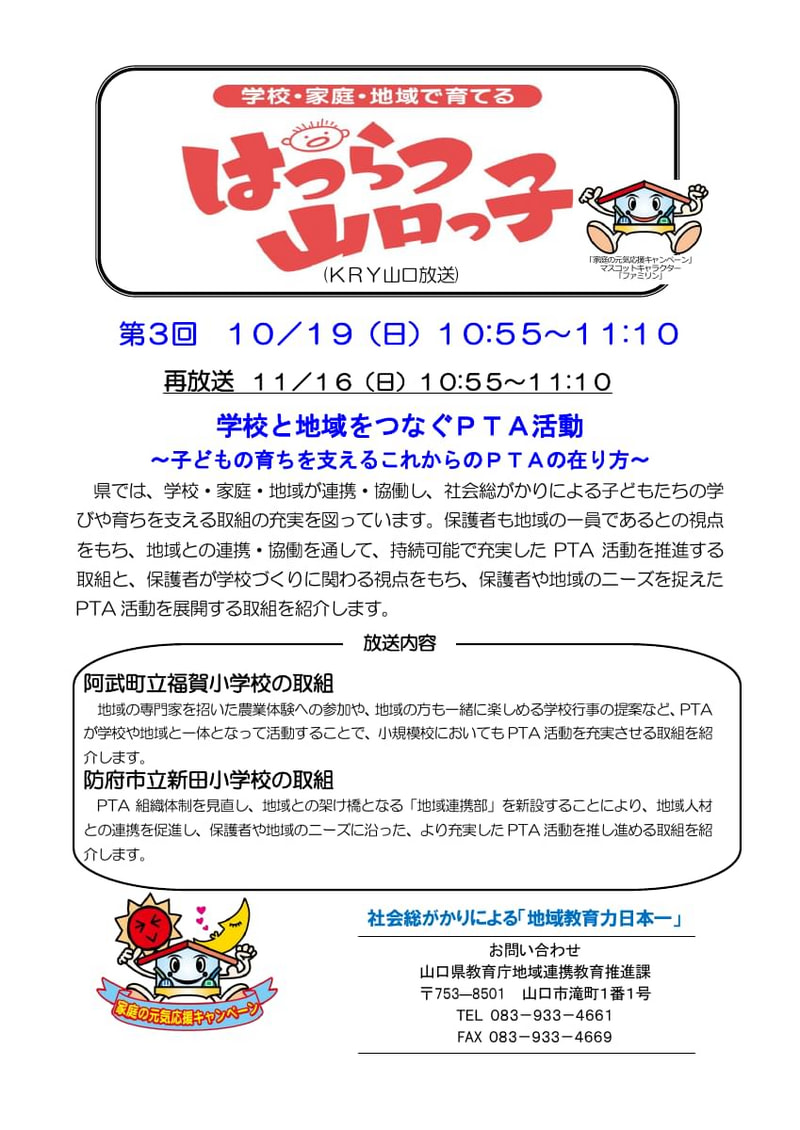 学校・家庭・地域で育てる「はつらつ山口っ子」のお知らせ