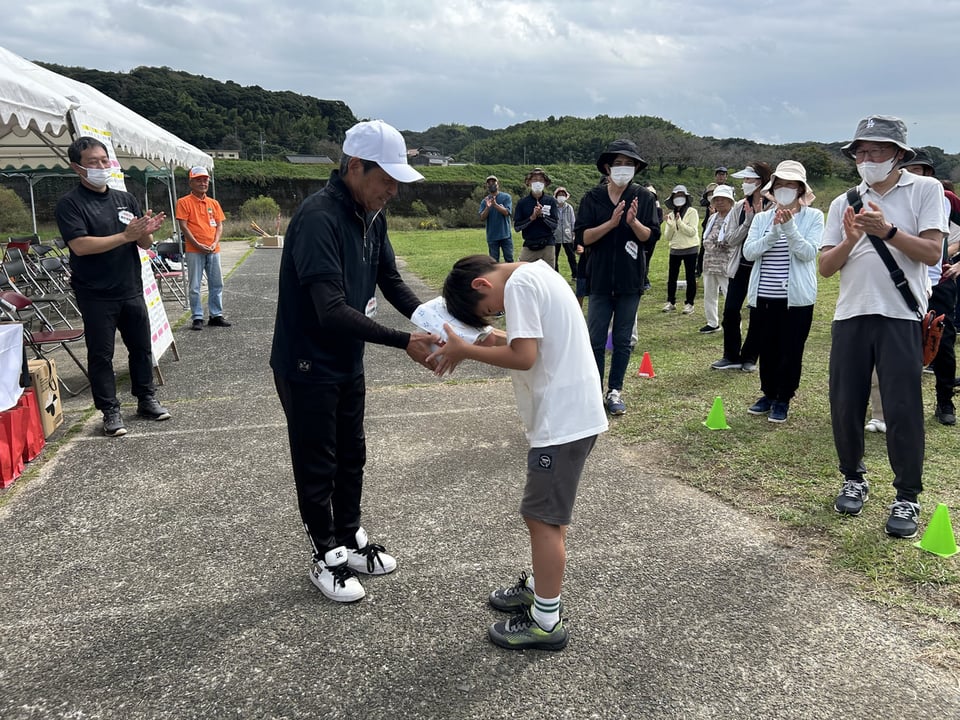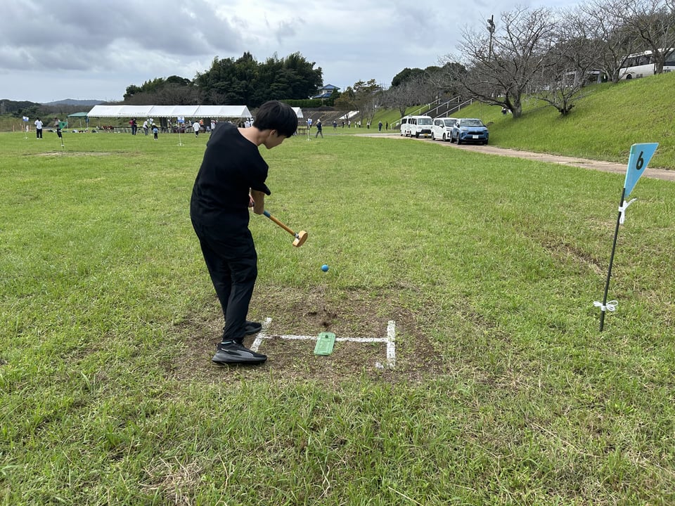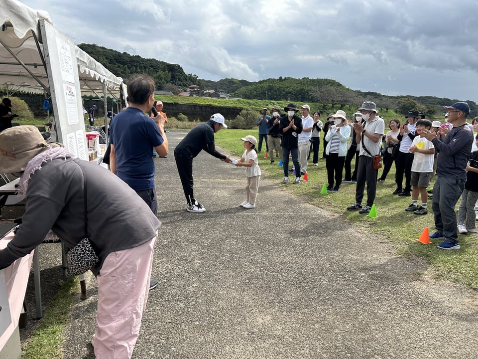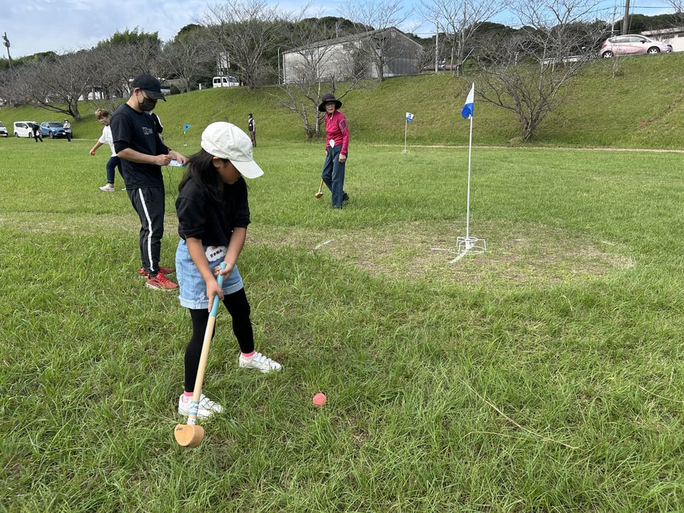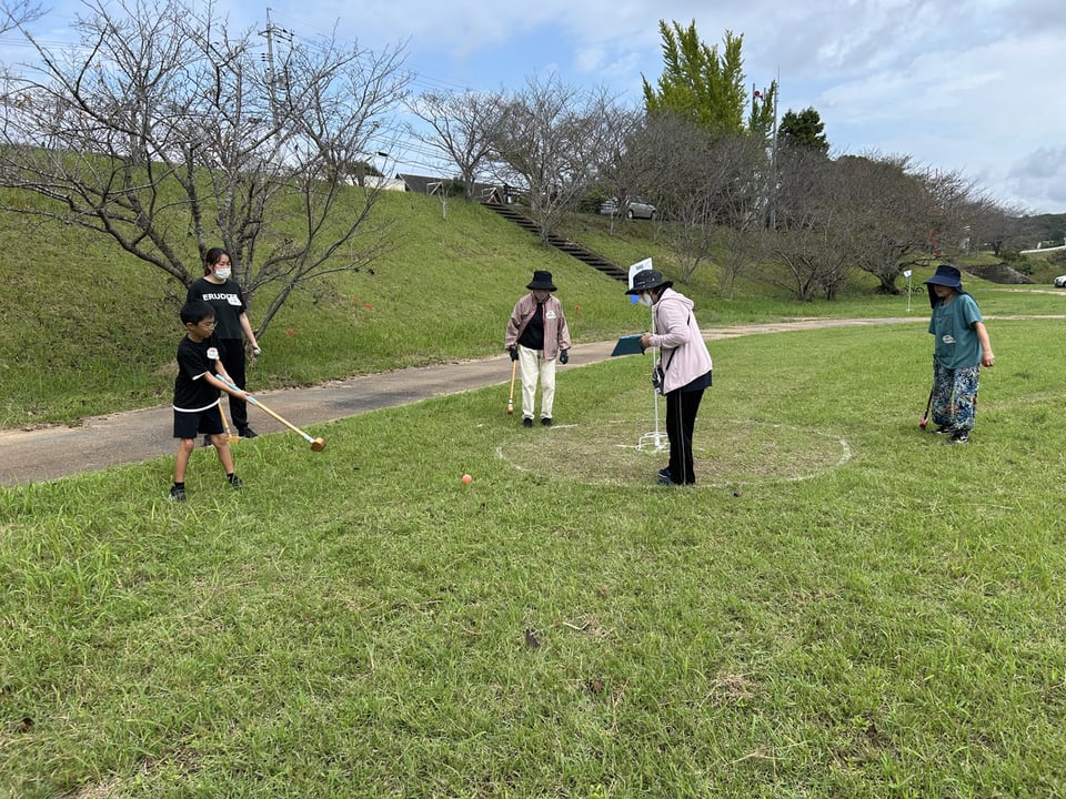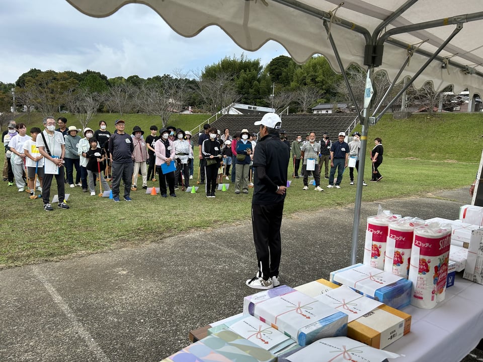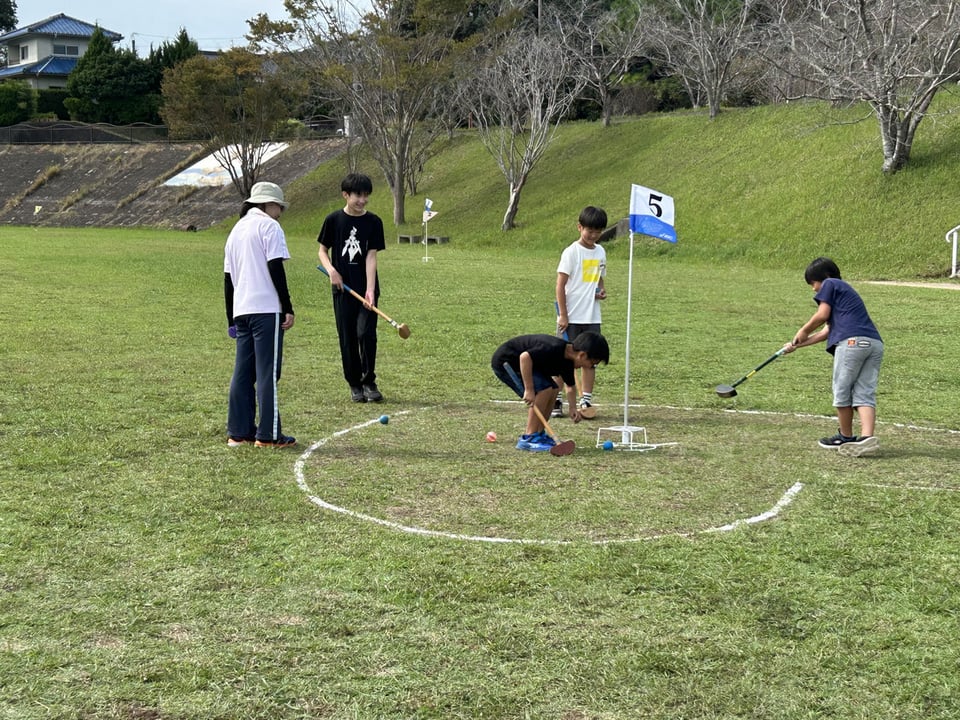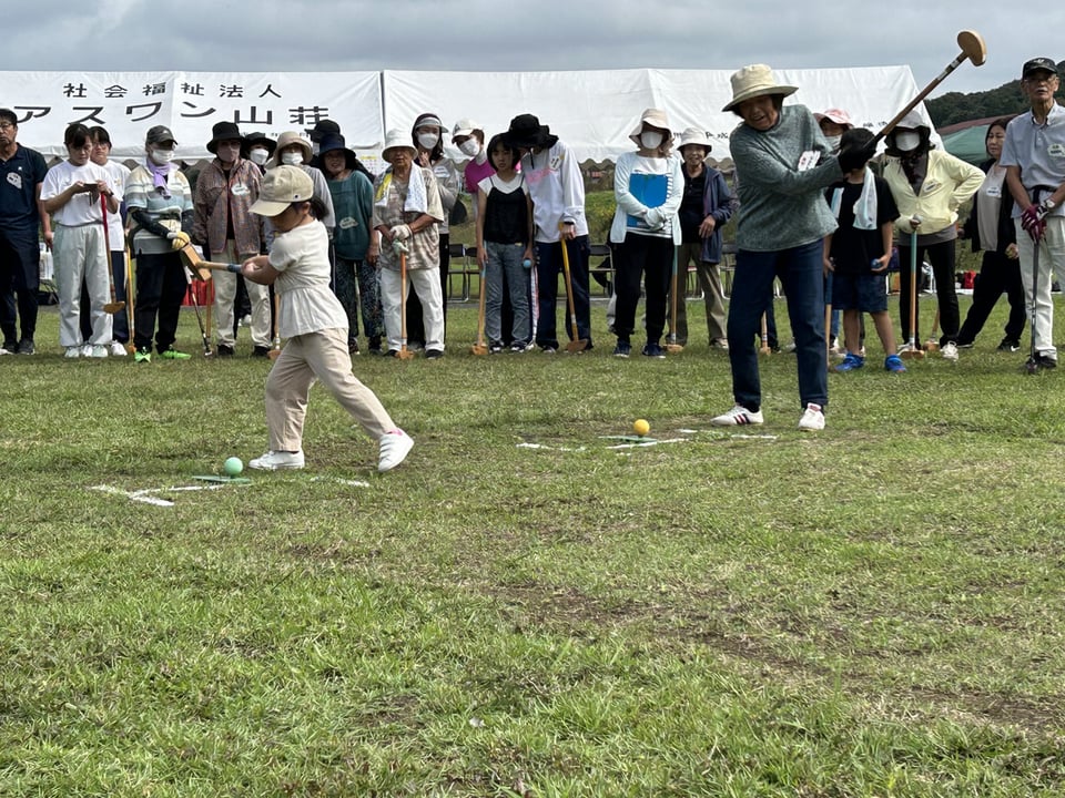 10月18日、アスワン山荘主催による「四世代交流グランドゴルフ大会」が開催されました。この日の雨予報とはうって変わって、蒸し暑いくらいの晴天となりました。二俣瀬小の子どもたちや保護者・地域のみなさんがたくさん参加されて、大いに盛り上がったグランドゴルフ大会となりました。桜づつみ公園の緑の中で行うグランドゴルフはとても爽快で、心地よかったです。みなさんの歓声や応援の声が響き渡りました。本当にのどかで、気持ちよい時間を過ごすことができました。子どもたちも大活躍で、昼食のカレーライスをみんなでおいしくいただきました。土曜日の半日、本当にお世話になりました。みなさん、ありがとうございました。