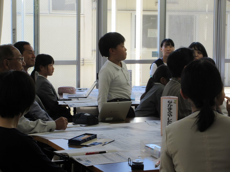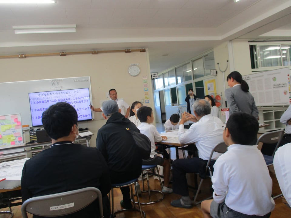 次に、これまで子どもたちが取り組んできたことを、インタビュー形式で発表しました。子どもたちは緊張しながらも自分たちがこれまでやってきたことを堂々と発表することができました。このような人前で話す経験も子どもたちの課題解決の取組の一つとなります。