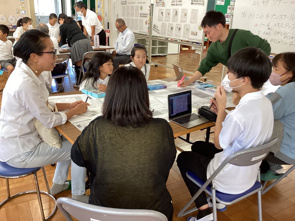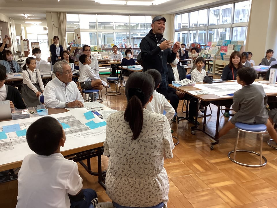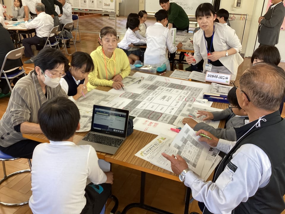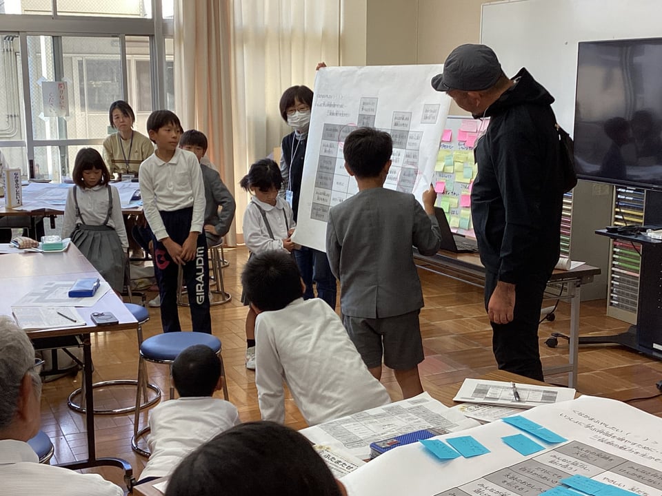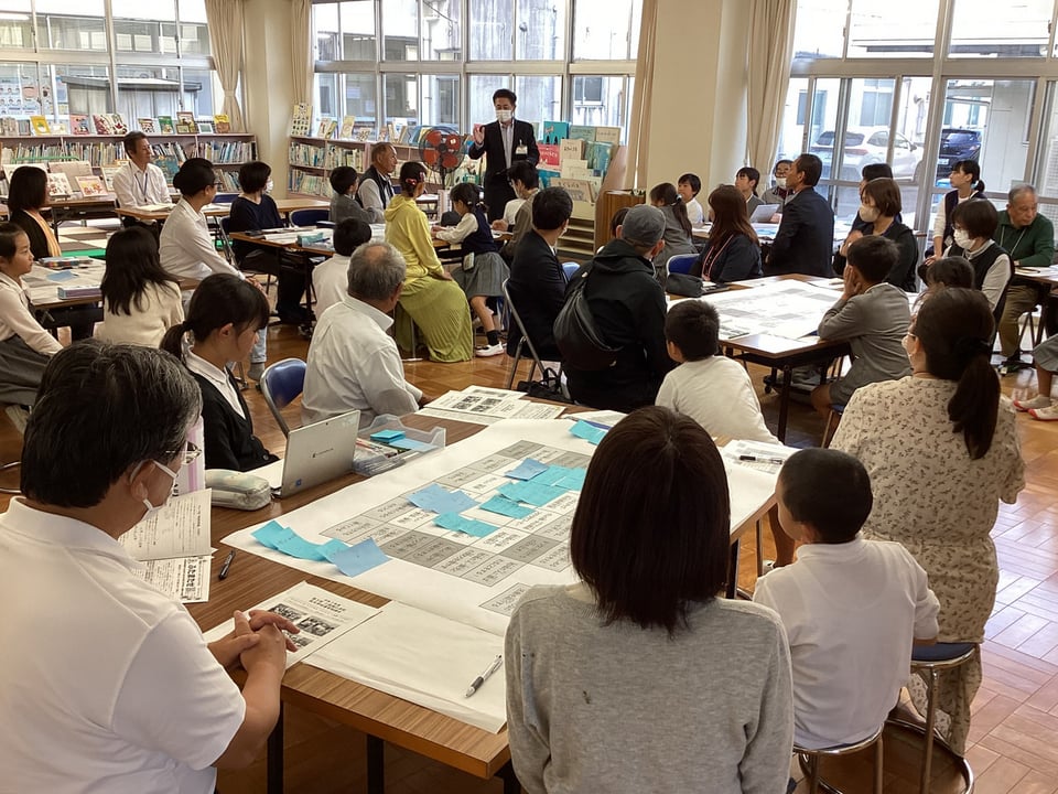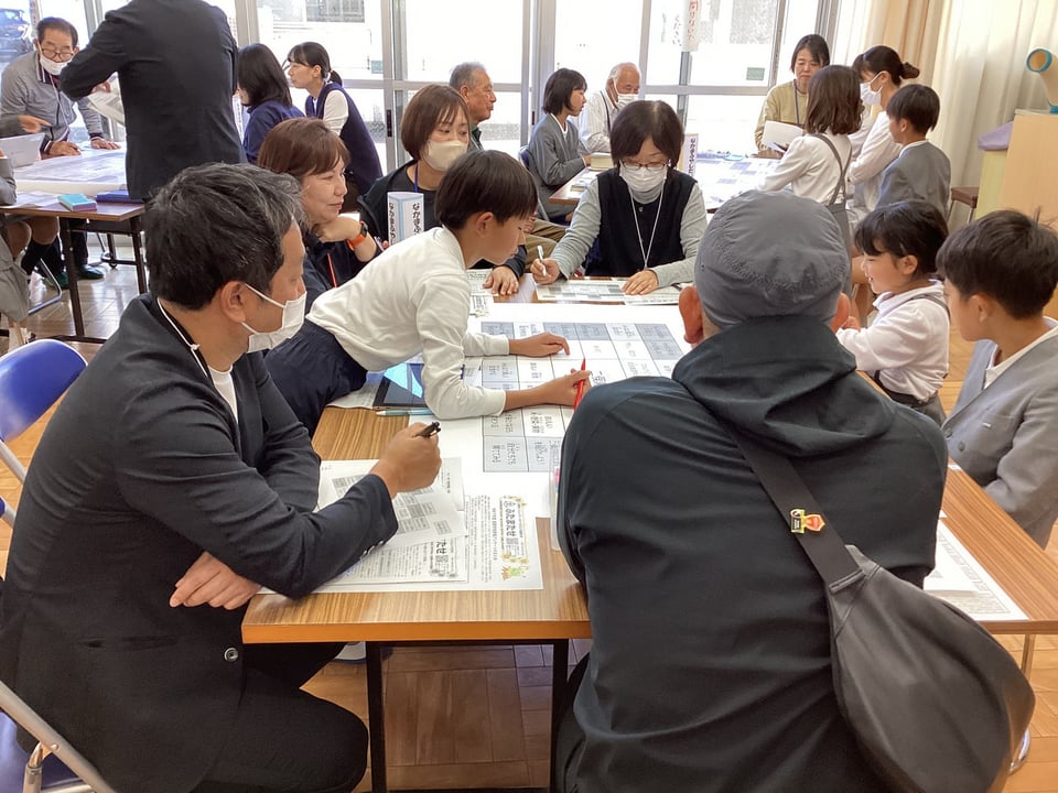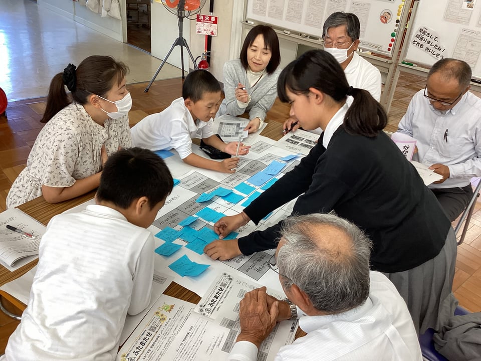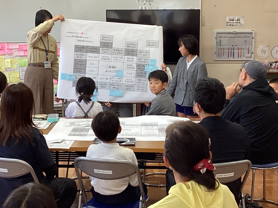 そして、6つのグループに分かれて熟議を行いました。子どもたちがこの日までに考えてきた「学び直しタイムでもっとみんなが教え合う」や「みんなが笑顔になる取組を行う」、「結太鼓の楽しさを伝える」、「自分たちの一輪車の技を増やす」、「地域の祭りに自分たちの店を出す」、「子ども会キャンプに誰でも参加できるようにする」、「学童保育でもっと楽しい遊びや体験ができるようにする」などについて、シートをもとに子どもたちがやりたいことを発表したり、保護者・地域のみなさんがよいと思った取組を選択したりしました。保護者・地域の方々が、子どもたちに問いかけながら、やりたいことを具体的に膨らませてくださったことに、心から感謝いたします。子どもたちと保護者・地域のみなさんによるすてきな協議の時間となりました。まさに「こども まんなか 二俣瀬」の姿がここにありました。