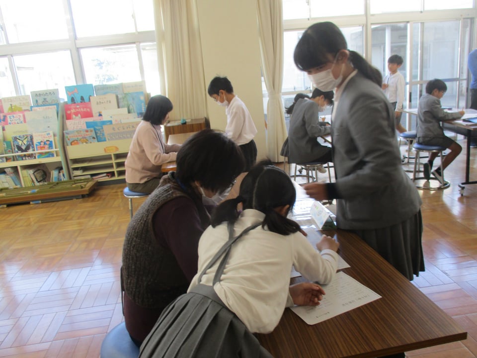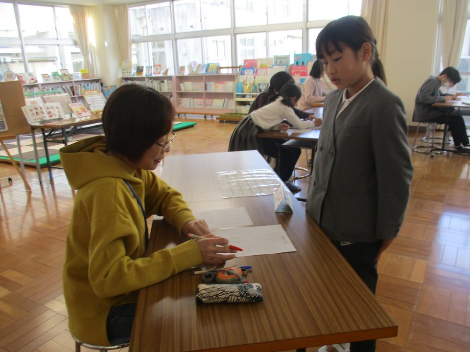 11月7日の国語の学び直しタイム「スキルアップ」の様子です。子どもたちとちょボラのみなさんが生き生きとした表情で関わっています。いろいろなたくさんの方々が、子どもたちの成長を期待し、見守ってくださっていることに心から感謝いたします。この日は、長崎県壱岐市立那賀小学校の学校運営協議会委員さんたちがコミュニティ・スクールの研修視察に来られ、学び直しタイムの様子もご参観くださいました。学校と地域との連携体制が確立されていることに感心されていました。