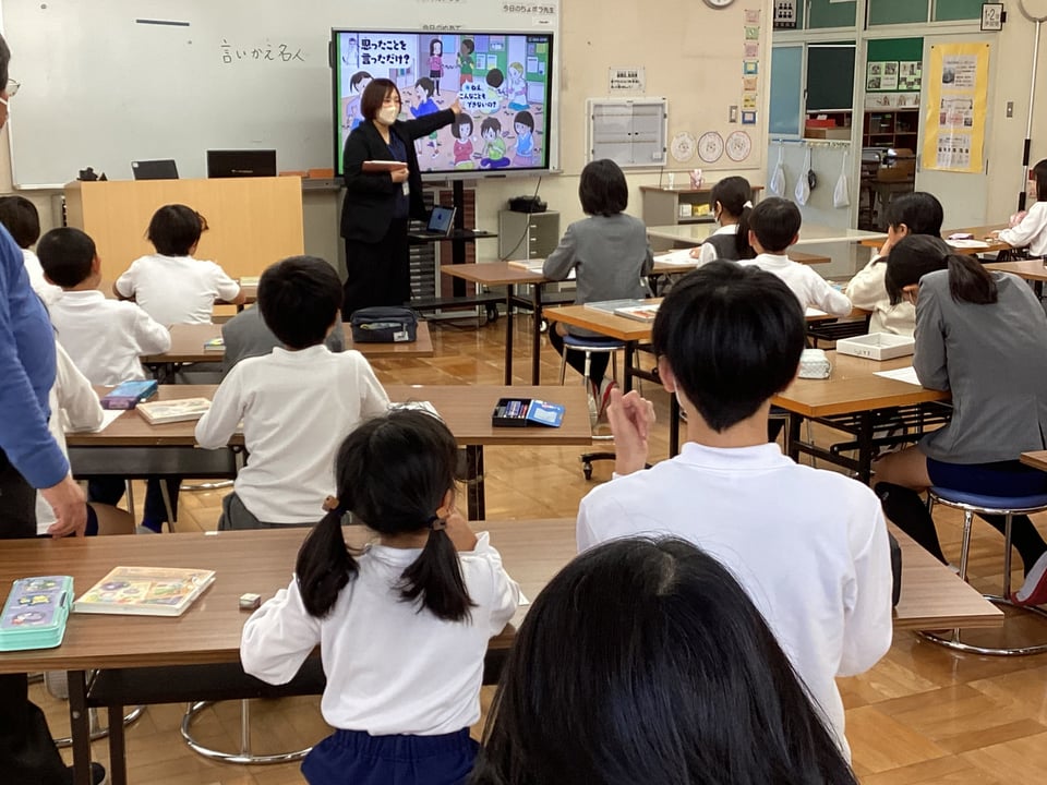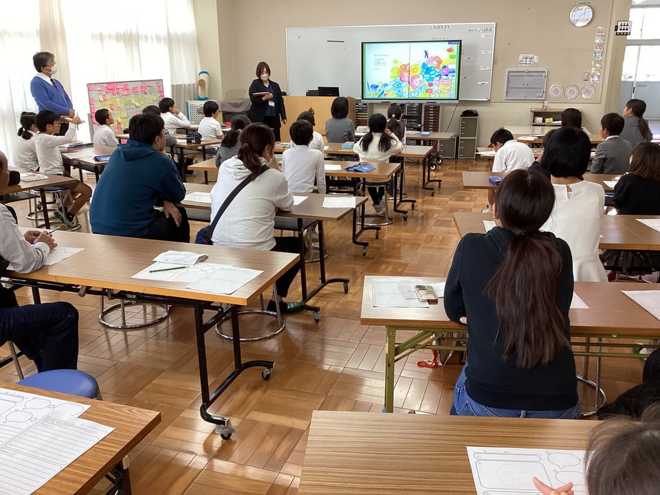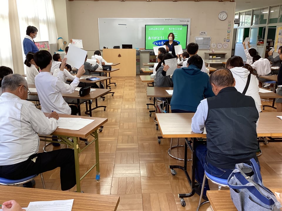 11月7日は人権教育参観日でした。この日は全校人権学習として全校での道徳学習「ふわふわ言葉とちくちく言葉について考えよう」を行いました。保護者・学校運営協議会委員のみなさんにも授業に参加していただき、地域道徳のような形態で実施しました。