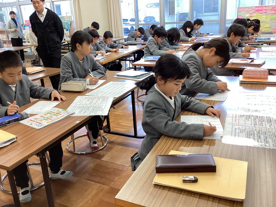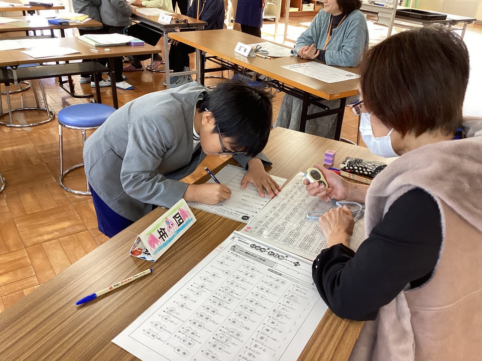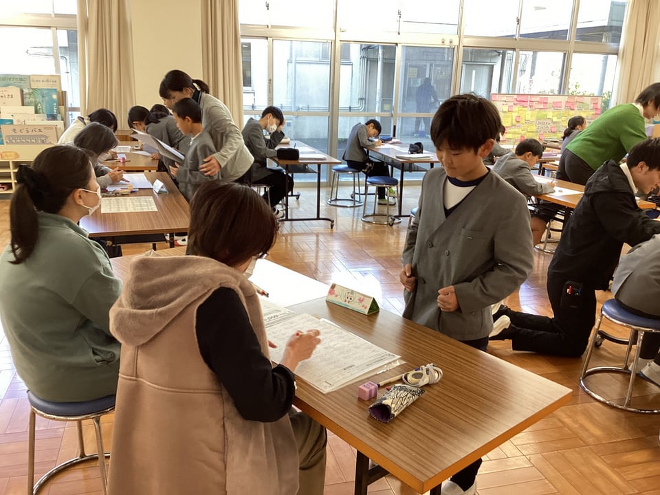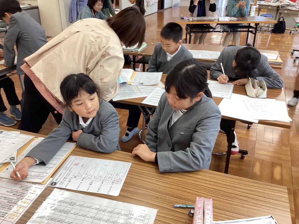11月19日に実施した国語の学び直しタイム「スキルアップ」の様子です。この日は、小テストが漢字だったということもあり、漢字にチャレンジする子どもが多くいました。感心したのは、その漢字の定着度です。問題の9割を超える得点を出す子どもたちがほとんどでした。これも、「スキルアップ」の成果の一つかもしれません。ちょボラのみなさんと会話しながら評価を受けたり、時間を計って集中してテストに取り組んだりする関わりも素敵な光景でした。異学年での教え合い活動も自然な形で行われるようになりました。「継続は力なり」ですね!