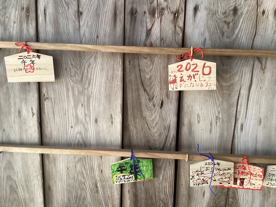 1月6日、学童保育では恒例の「絵馬の奉納」を行いました。これは、子どもたちの今年の願いや決意を絵馬に書いて、二俣瀬小の隣の日吉神社の神殿に奉納するというものです。この取組に、私・校長も参加させてもらいました。子どもたちは自分が書いた絵馬を神殿の奉納場所に飾り付けました。この日は、学童保育に来た一部の子どもたち分だけですが、その他の子どもたちも来たときに奉納するそうです。みんなの願いが神様に届き、叶うことができるように、自分たちにできることをしっかりとがんばっていきましょう。