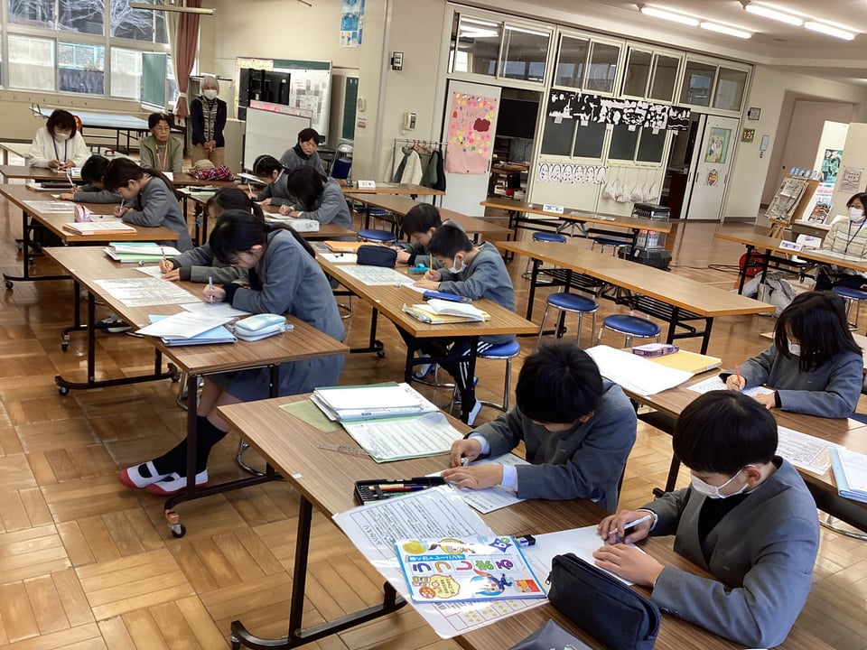 1月21日、算数の学び直しタイム「スキルアップ」を行いました。この日は、3・4年生がCBTによる宇部市学力定着状況を行うため、1・2年と5・6年合同で実施しました。高学年の子どもたちが低学年児童にやさしく教えたり、解決方法をアドバイスしたりする姿が多く見受けられました。1・2年生にとっては、たくさんの先生がいるようなものです。1・2年生にとって、5・6年生の学び方や学ぶ姿はとてもよいモデルとなっていました。子どもたちが目標とした問題に主体的に取り組む場面では、ちょボラのみなさんのところに行き、スピードチャレンジに取り組んだり、正確な図形を描くことができているかを点検してもらったりしていました。子どもたちの主体的に人に関わりながら、学びに向かう態度がすてきでした。