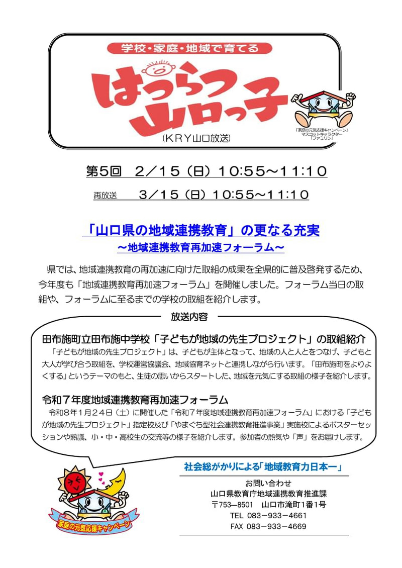 学校・家庭・地域で育てる「はつらつ山口っ子」のお知らせ