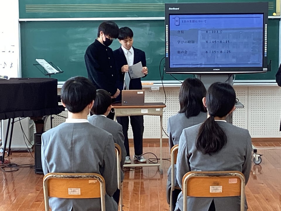 2月5日の午後から、6年生は保護者の皆さんと一緒に厚東川中学校の進学説明会に参加しました。子どもたちは少し緊張した様子でした。この会では、中学校が大切にしている教育活動の話や中学校生活・生活の約束などのお話を聞きました。また、中学校の生徒会のみなさんからは、小学校と中学校のちがいや部活動に関する説明を聞きました。さらに、中学校の音楽の授業を体験することもできました。そして、最後には部活動の様子を見学することもできました。中学生になるという不安はまだまだあるかもしれませんが、中学校の先生方や先輩である生徒のみなさんは、みんなが入学してきてくれることを心待ちにしてくださっています。この説明会をよい機会として、少しずつ心と体の準備をしていきましょう!