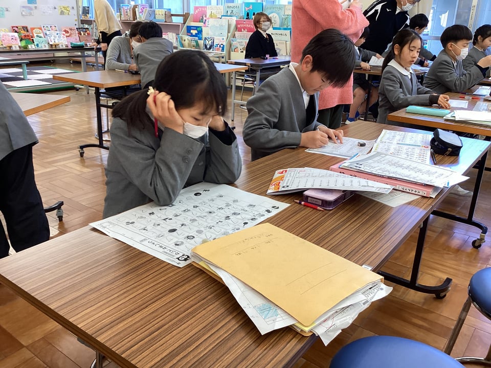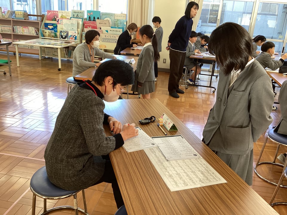 2月18日、国語の学び直しタイム「スキルアップ」を行いました。この日は、漢字の総まとめを行いました。3学期も後半となり、漢字の総まとめを行う時期です。該当学年やこれまでに習った漢字を確実に身に付けておくことはとても大切です。子どもたちは、自分の苦手な漢字問題を選んでテスト、そして自分で答え合わせ、ちょボラのみなさんに点検してもらうという流れで学習を進めました。高学年の子どもたちの漢字習得率がとても高いことに感心しました。