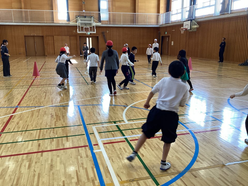 この学級懇談会の間、子どもたちは体育館で「ドッヂビー」をして楽しみました。全校のみんなで楽しいひとときを過ごすことができました。