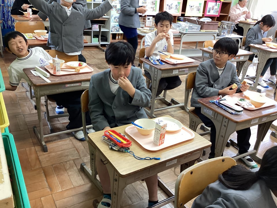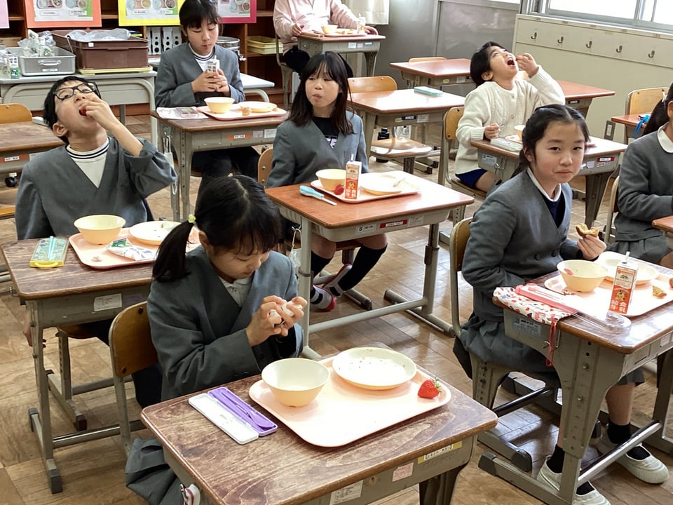 全校でいちごをおいしくいただきました!