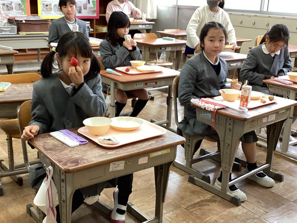 2月25日の給食では、農家さんのご厚意で、6年生が収穫したいちごの一部を二俣瀬っ子の給食用に分けていただきました。早速、給食にて、全校児童・教職員一同でいただきました。鮮度抜群で甘くてとてもおいしかったです。子どもたちも、みんな大喜びでした。一足先に、採れたていちごをみんなでいただきました。いちごを食べるとみんな笑顔です。本日も地域のぬくもりを感じる日となりました。いちご農家さん、本当にありがとうございました。