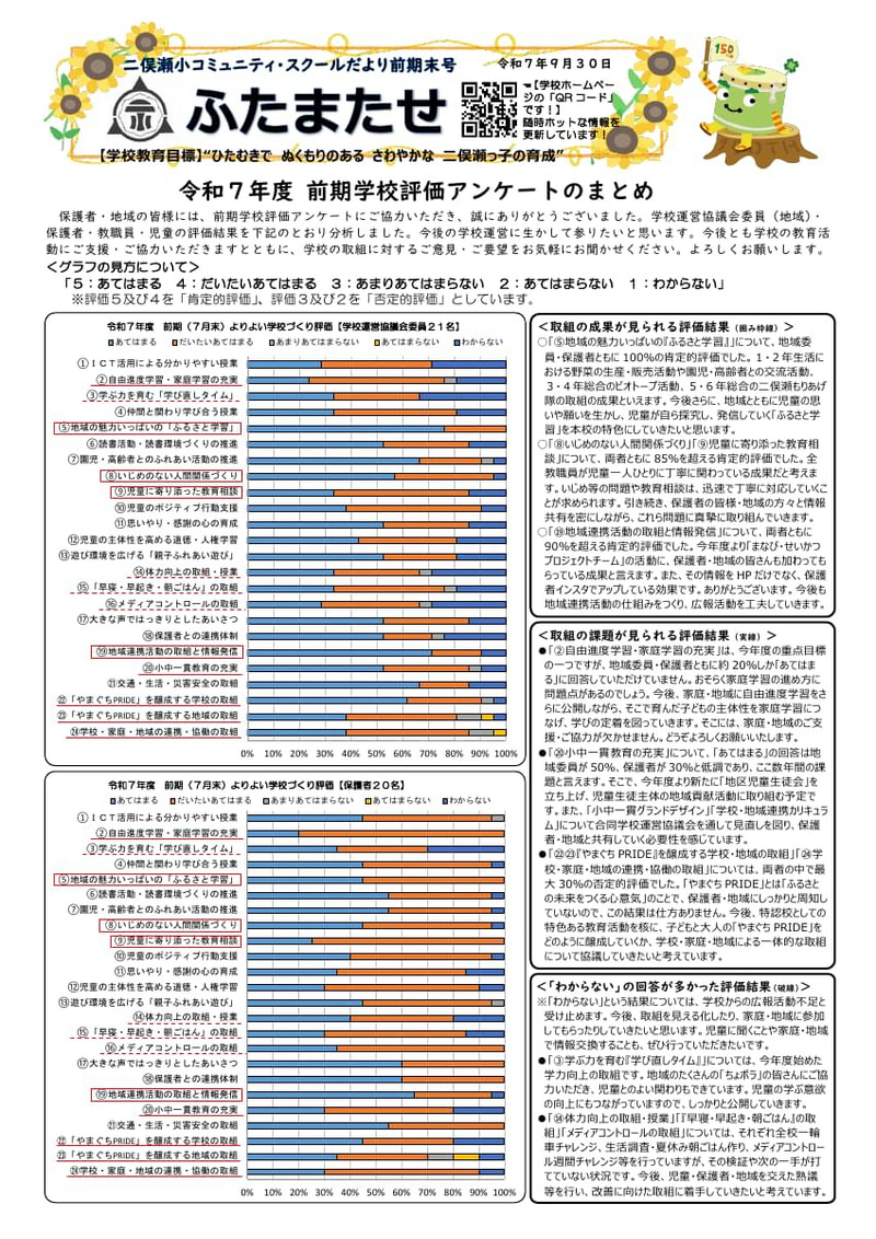 > 令和7年度 前期学校評価アンケートの結果のまとめ