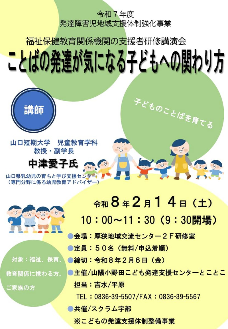 研修講演会のお知らせ「ことばの発達が気になる子どもへの関わり方」