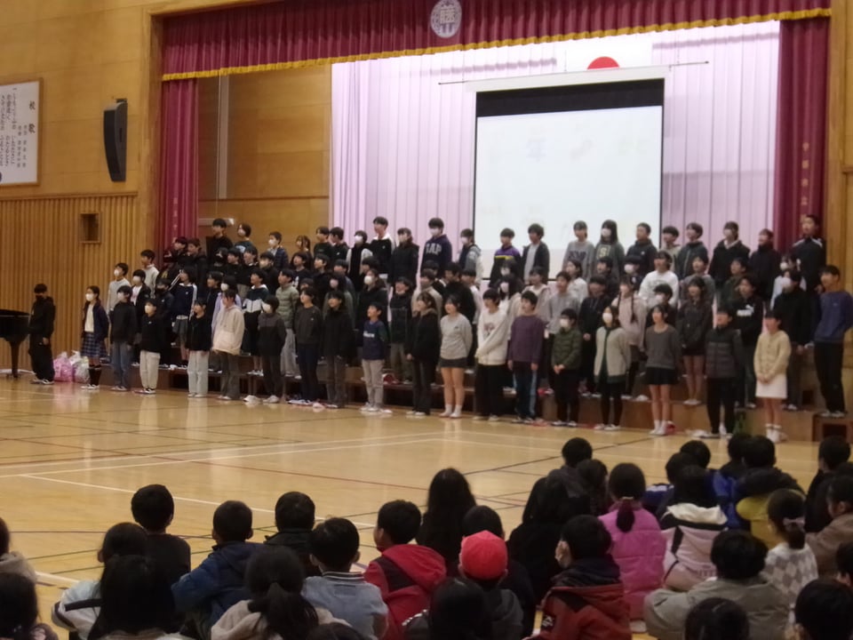 全校児童が体育館に集まる本集会はこれが最後となり、卒業まで残り10日となりました。
