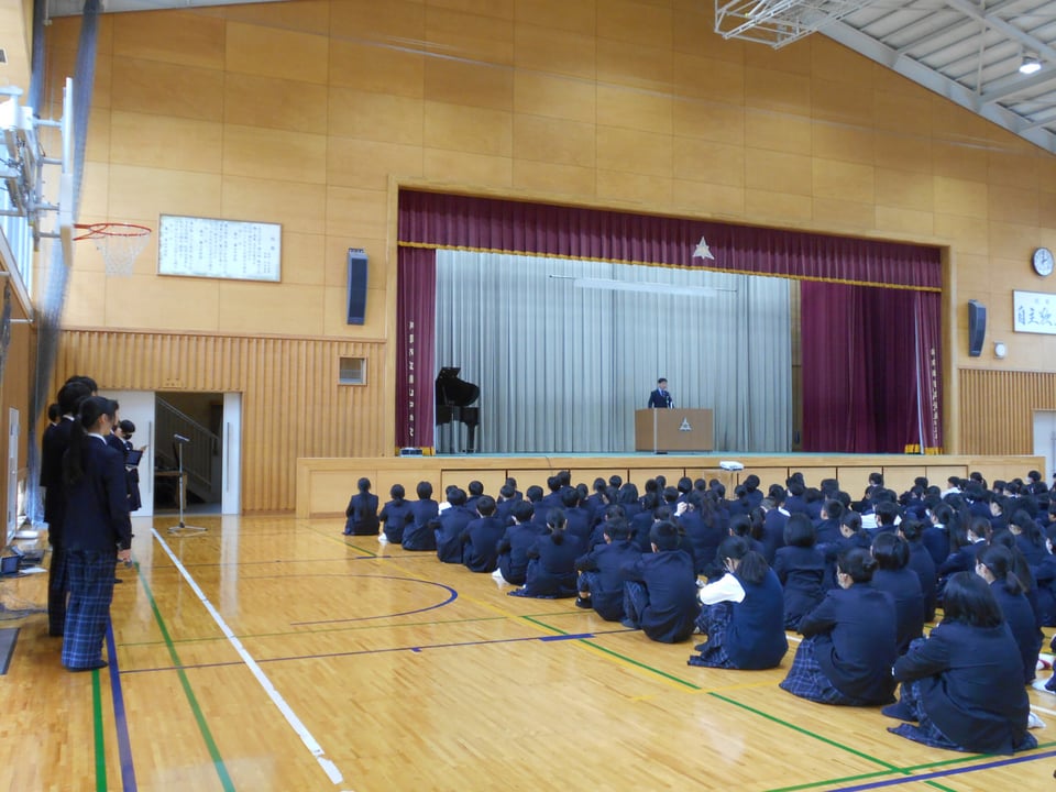 地域の方との対面式に続き、1学期の学級役員認証式を行いました。各委員会の紹介では、代表生徒がこれからの活動に向けた力強いメッセージを全校生徒に発信しました。その後、学年代表の学級委員長がステージに上がり、緊張感のある面持ちで認証書を受け取りました。新しいリーダーたちを中心に一人ひとりが自覚と責任を持ち、より良い藤山中学校を自分たちの手で築いていくことを期待させる頼もしい式となりました。