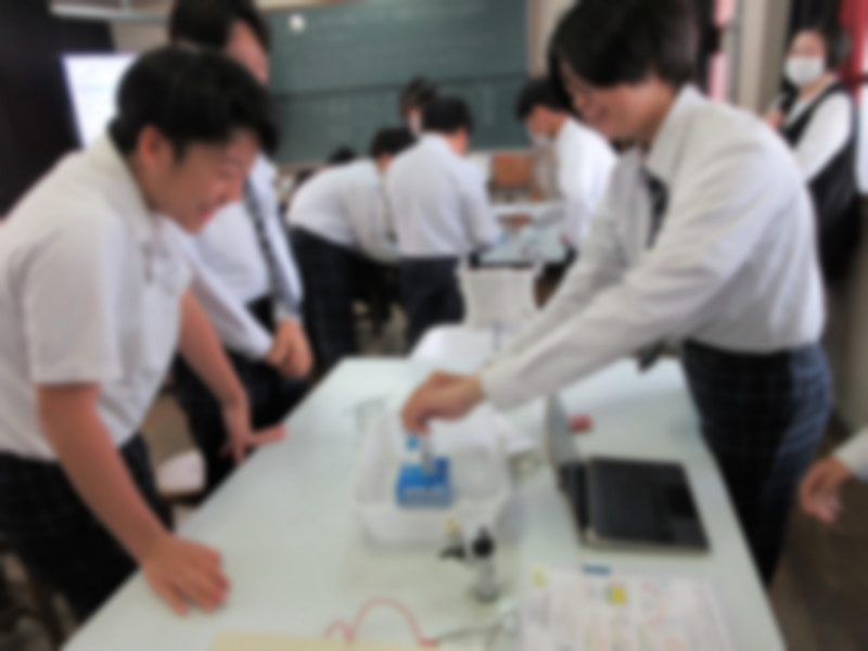 2年生の理科の授業で、水に電流を流した際の変化を観察する実験を行いました。装置に水を満たし、電流を流して刻々と変化する様子を観察。その後、発生した物質について班の仲間と協力して考えました。あらかじめ予測を立て、自ら手を動かして検証するプロセスは、まさに理科の授業の醍醐味です。生徒たちの笑顔と、真剣な眼差しが印象的な時間となりました。こうした「実際にやってみる」ことで得られる実感が学びを深めています。