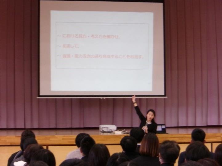 1月21日(水)に藤山校区の小中学校でより良い授業づくりに向けた研修会を藤山小学校で実施しました。研修会では、実際に藤山小学校の児童の英語の授業を藤山校区3校の全先生たちで参観し、講師には関西外国語大学教授の 直山 木綿子 先生をお招きし、英語の授業に関する大切な多くのお話をいただきました。