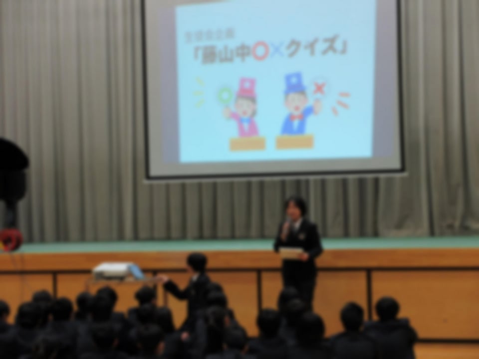 4月9日(木)に、新入生を温かく迎える対面式が行われました。手作りアーチをくぐって入場した1年生。生徒会長の歓迎の言葉に続き、学校紹介クイズでは全校生徒で盛り上がり、交流を深めました。続く部活動紹介では、各部が工夫を凝らした動画などで日々の活動を披露し、1年生は先輩たちの熱心な姿に見入っていました。新入生代表の挨拶も大変立派で、全校生徒が心を一つにした、素晴らしいスタートの1日となりました。