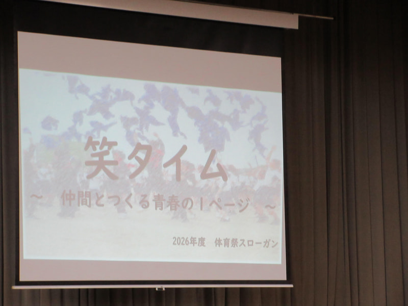 4月17日(金)の全校集会にて、今年度の体育祭スローガン「笑タイム~仲間とつくる青春の1ページ~」が発表されました。続いて行われた運命の「色決め抽選会」では、くじ引きの結果、赤・黄・青の3隊編成が決定!会場は大いに盛り上がりました。今後は5月30日(土)の本番に向け、応援団の企画や各学年での練習が本格化します。学年を超えた絆を深め、最高の「笑タイム」を作り上げましょう!