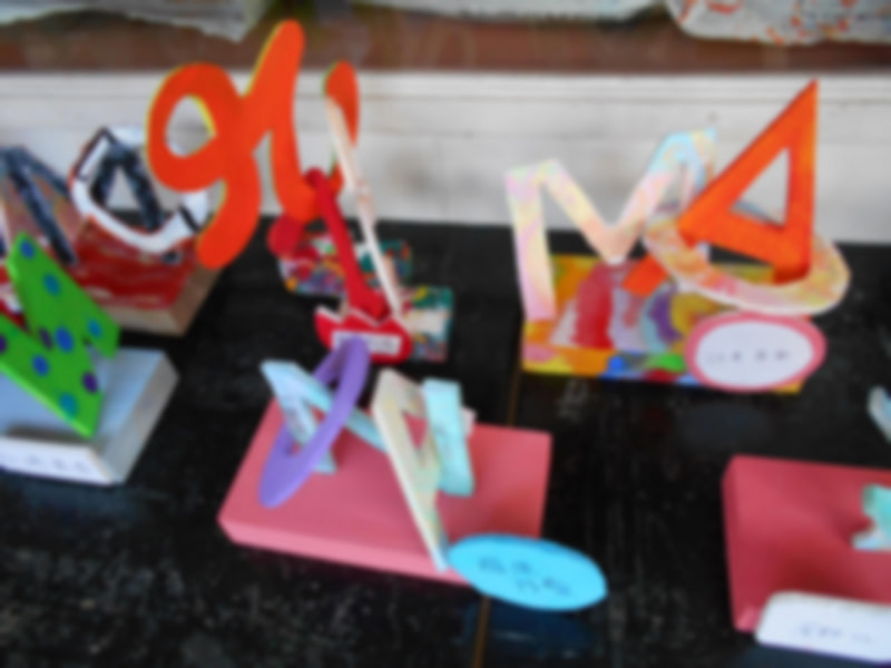 美術室前に生徒が作成した美術作品が、展示されています。生徒たちがそれぞれの個性を発揮し、工夫を凝らした素晴らしい作品ばかりです。