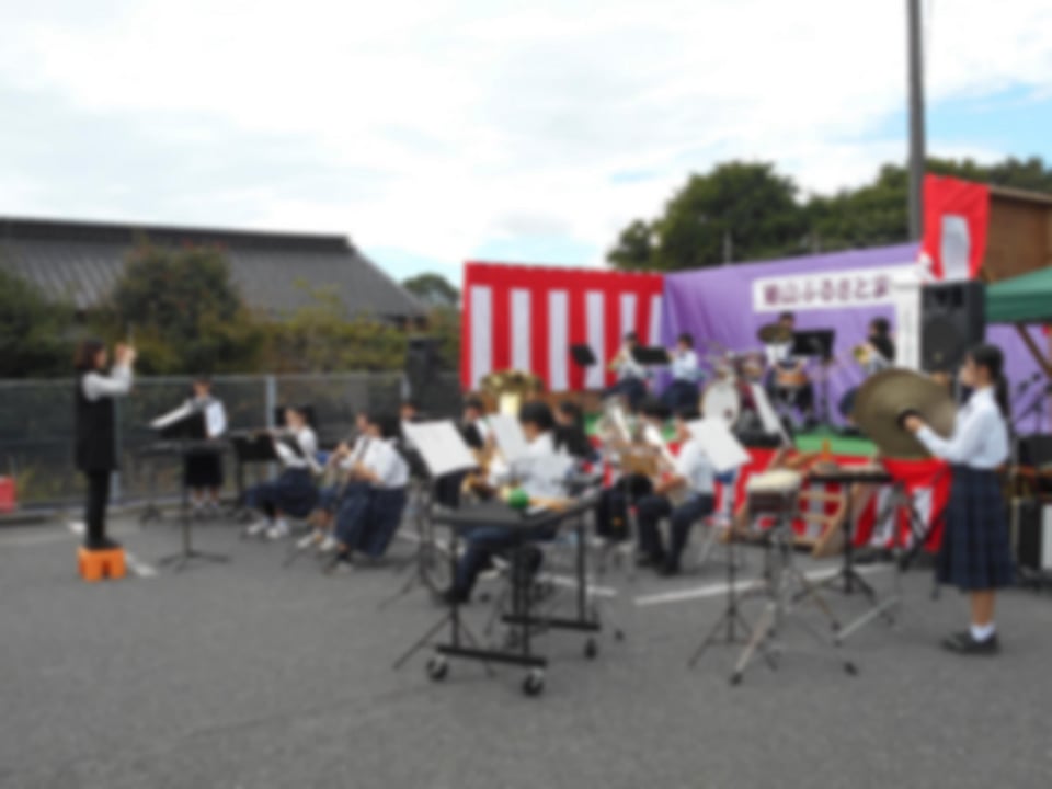 10月26日(日)に、藤山ふれあいセンターで「藤山ふるさとまつり」があり、藤山中の地域元気応援隊もお手伝いで多くの生徒が参加しました。当日は、晴天の中、多くの地域の方々が展示を見たり、イベントや企画に参加したりしており、本校の吹奏楽部も演奏をするなど、大いに盛り上げていました。