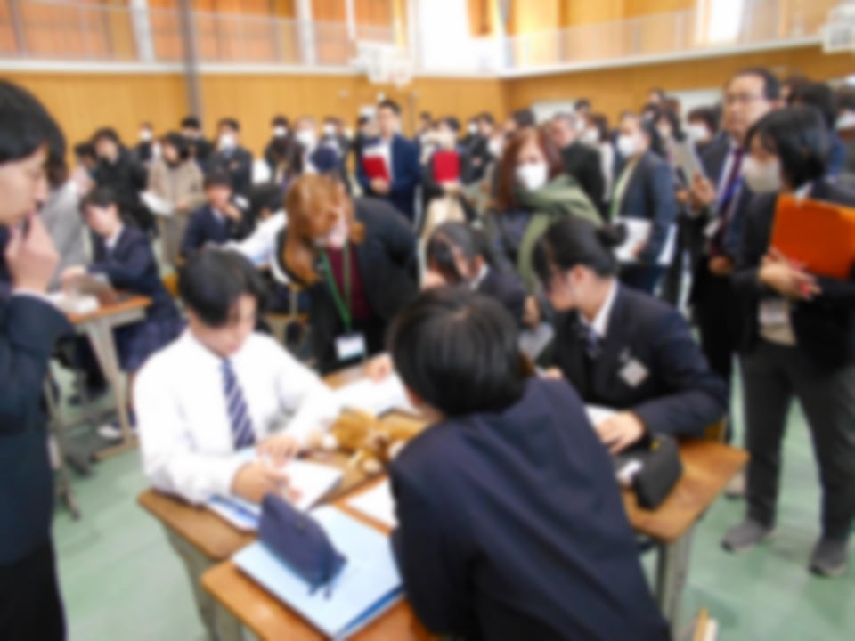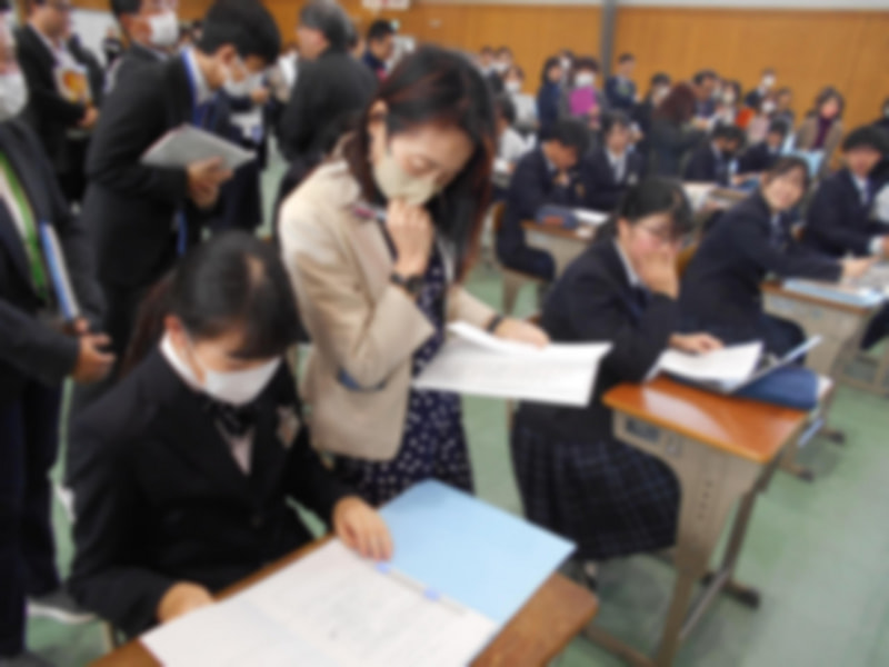 11月19日(水)に3年2組の英語の授業で公開授業研究会を実施しました。指導者として関西外国語大学教授の 直山 木綿子 先生をお招きし、授業づくり等について多くのお話をいただきました。生徒たちは、多くの参加者の中で緊張しながらもクラスの仲間と協力して真剣に授業に取り組むことができました。