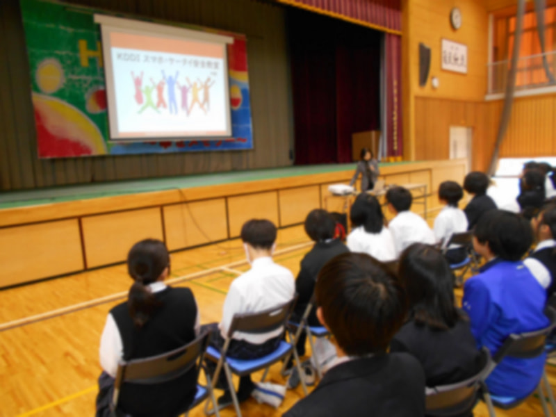 12月8日(月)に本校体育館にて全校生徒を対象とした「スマホ・ケータイ安全教室」を実施しました。KDDIスマホ・ケータイ安全教室認定講師の方からスライドの資料や映像を使って生徒たちにもわかりやすく説明をしていただきました。