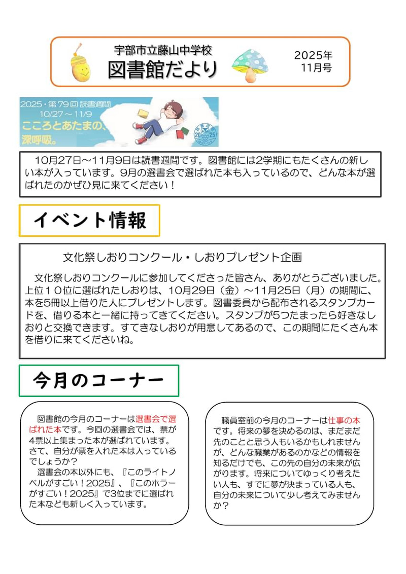 > 図書館だより11月号