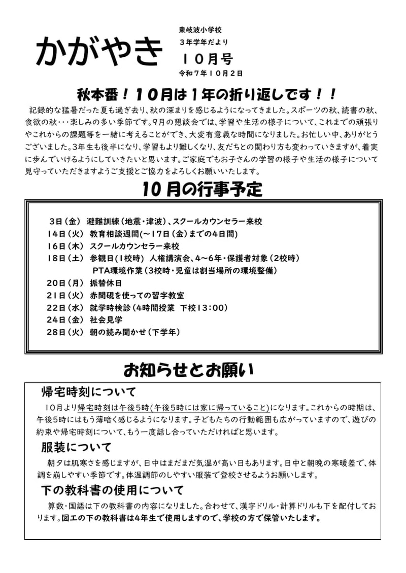 3年学年だより(10月号)