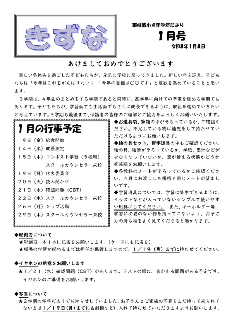 4年学年だより(1月号)