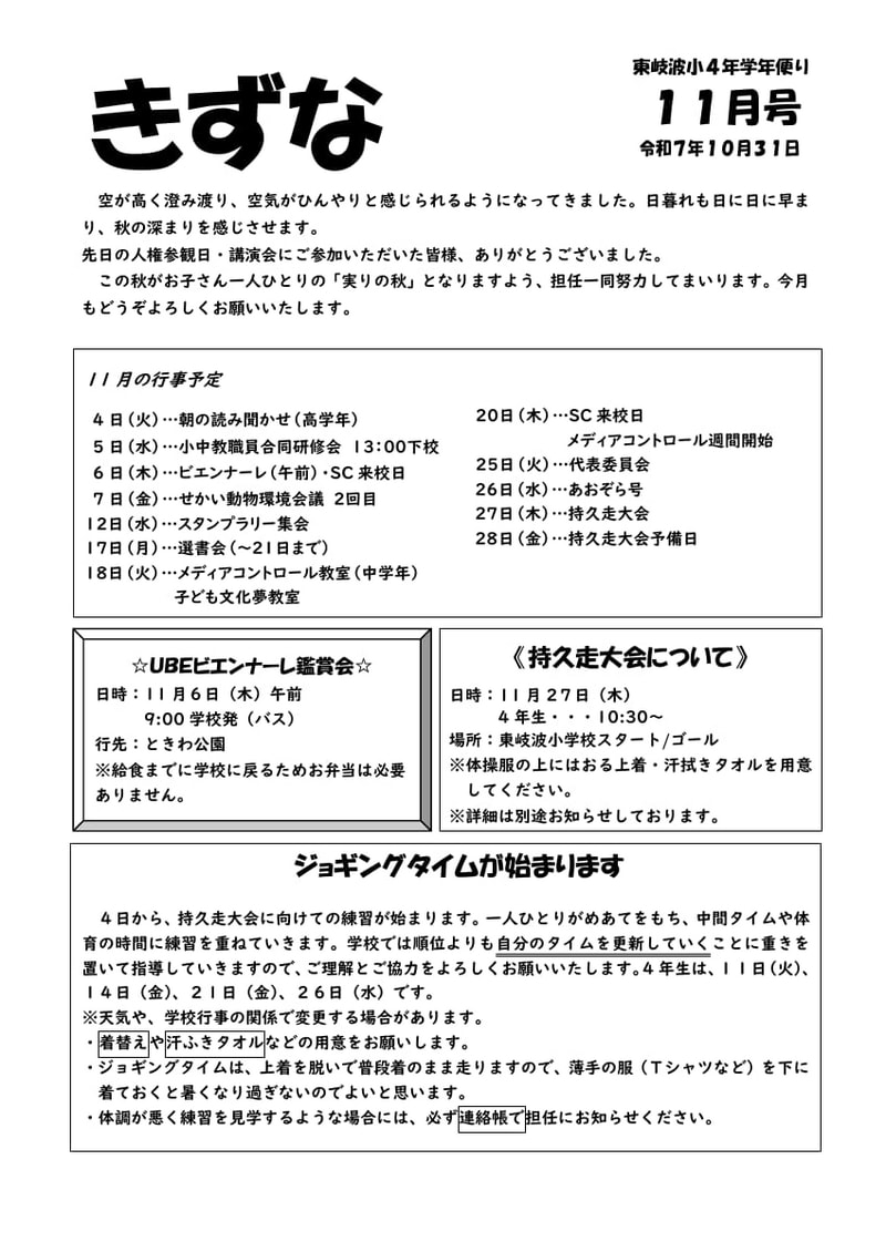 4年学年だより(11月号)