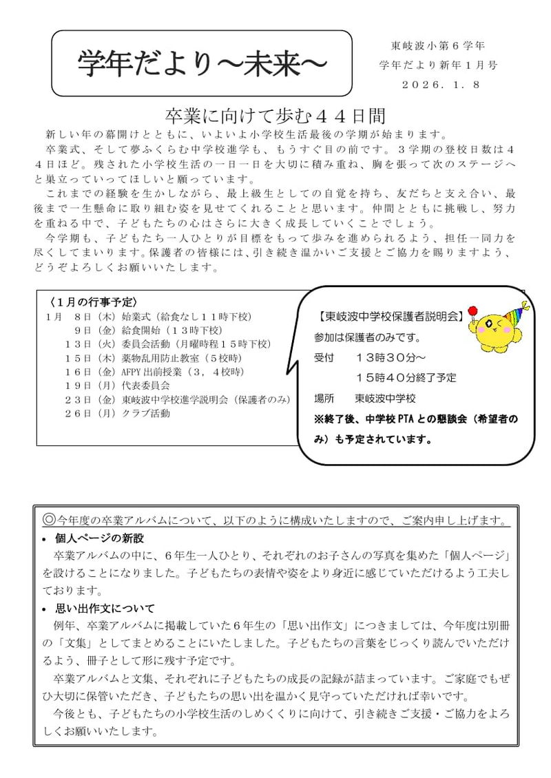 6年学年だより(1月号)