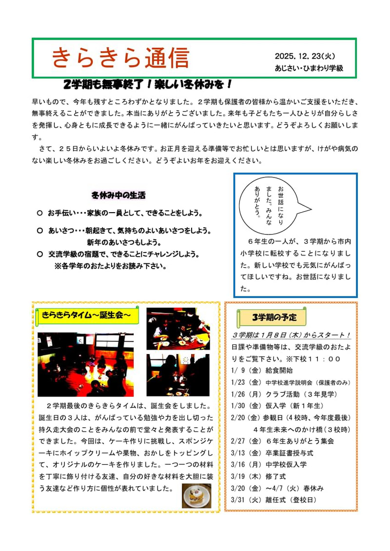 ひまわり・あじさい通信(年末号)