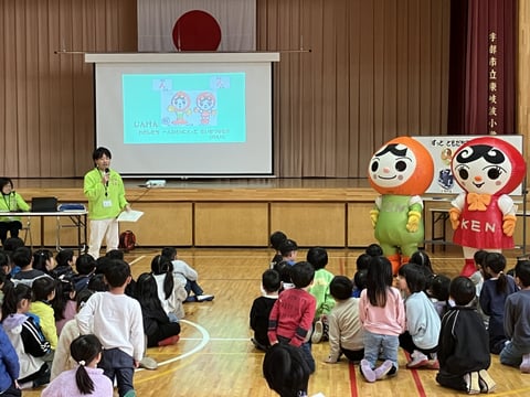 1年生と3年生が人権教室の授業を受けました。人KENまもる君とあゆみちゃんも来てくれました。子どもたちに分かりやすいように人権擁護委員の皆さんがお話してくださいました。人権を大切にしてほしいと思います。