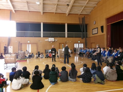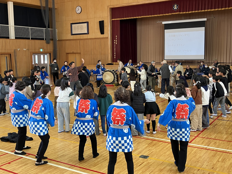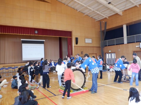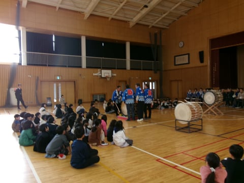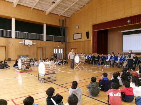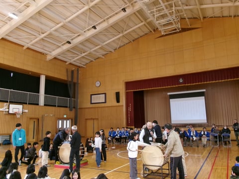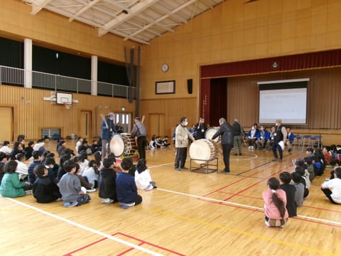 東岐波地区の様々な地区から「口説き太鼓」を教えに来てくださいました。3年生は、東岐波の地区によって微妙な違いがあることや自分の住んでいる地区の古い伝統について、おどろきつつも楽しく学ぶことができました。「東岐波PRIDE」を大人も子どもも実感できたひとときでした。
