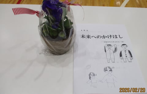 4年生は、3校時に「未来へのかけ橋」(1/2成人式)を行いました。