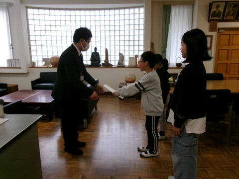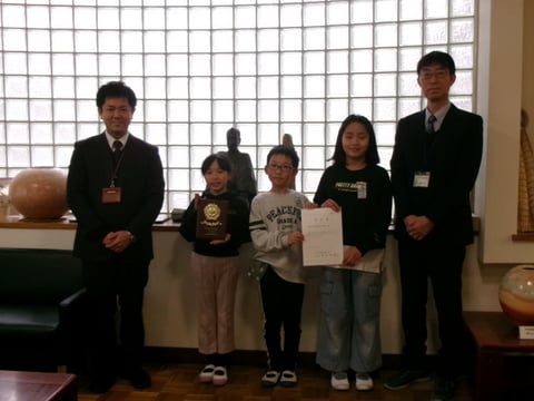 代表として4年生の3人が盾を受け取りました。これまでの先輩方の取組を受け継ぎ、後輩へとつないで、次の10年をめざしてほしいと思います。