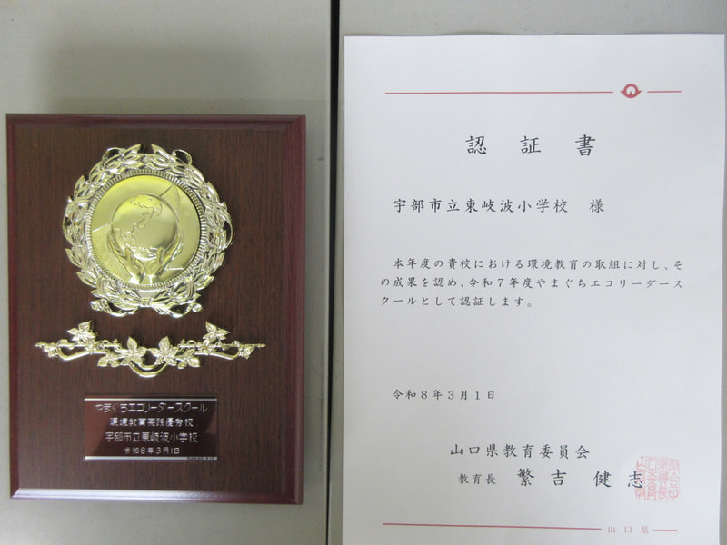 山口県教育委員会から「エコリーダースクール 環境教育優秀校」の表彰を受けました。