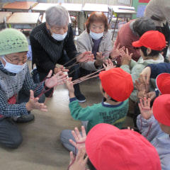 1月22日(木)1年生が地域の方に「昔の遊び」を教えてもらいました。竹トンボ、コマ回し、けん玉、お手玉、あやとりの5つの…
