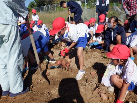 地域の方もお手伝いに来てくださいました。大きな芋がたくさん穫れました。