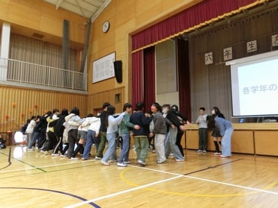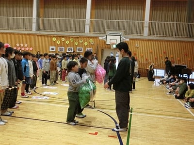 各学年の趣向を凝らした出し物や歌、そしてプレゼントで6年生の心も満たされたことでしょう。とても素敵な集会でした。