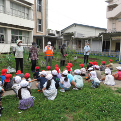 1年生が地域のさつまいも名人の方々に手伝っていただきながら、さつまいもの苗を植えました。さつまいもは、子どもたちの足音が…