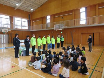 警察の方や、地域の交通安全対策協議会の方などの指導を受けて、大きな声で左右を確認し、渡ります。