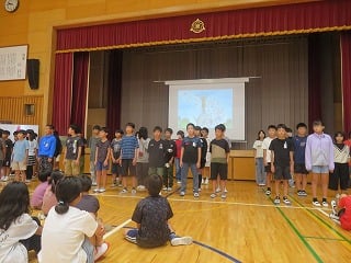 そして、平和への祈りをこめた歌を歌いました。体育館が素敵な歌声と優しい気持ちでいっぱいになりました。