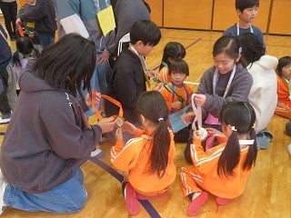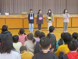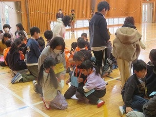 グループに分かれて学校探検をしたり、体育館に集まって楽しいクイズをしたり、園児も、5年生も素敵な笑顔を見せてくれました。
