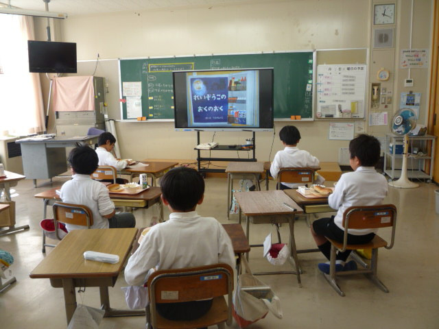 図書給食2日目は、「れいぞうこのおくのおく」という読み聞かせを子ども達が行い、各学級に配信しました。この本の中に出てくる「チーズ」くんが、最後には美味しい「カニチーズグラタン」になるお話です。そして、今日の給食でもグラタンをつくっていただきました。楽しい話を聞きながら、美味しく給食をいただくことができました。ありがとうございました。