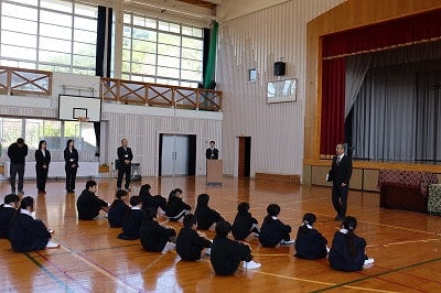 令和8年度のスタートに当たって、「自分から」「自分で」をキーワードに、みんなで楽しい学校を作っていこうという話をしました。学校生活や日常の生活の中で、自分から一歩踏み出し、自分で考えて行動することで、学校をより楽しく、温かく、自らを成長させる場にすることができます。一人ひとりの前向きな行動を積み重ね、笑顔あふれる学校をみんなでつくっていきましょう。